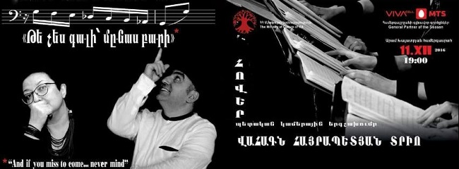 Դեկտեմբերի 11-ին «Հովեր» պետական կամերային երգչախումբը Վահագն Հայրապետյանի ջազ տրիոյի հետ համատեղ «Արամ Խաչատրյան» համերգասրահում կներկայացնի «Թե չես գա-լի՝ մը-նաս բա-րի» խորագրով նոր խմբերգային նախագիծը: