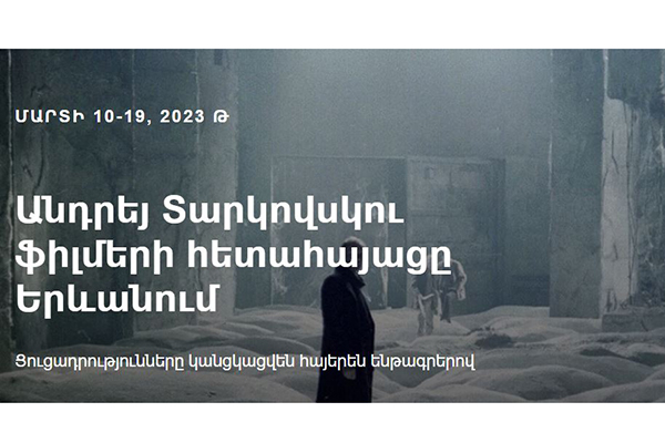 Ցուցադրվելու են «Իվանի մանկությունը» (մարտի 10), «Անդրեյ Ռուբլյով» (մարտի 11), «Սոլյարիս» (մարտի 12), «Հայելի» (մարտի 17), «Ստալկեր» (մարտի 18), «Զոհաբերություն» (մարտի 19) ֆիլմերը՝ հայերեն ենթագրերով: